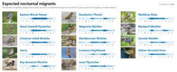 The Pennsylvania migratory birds website at https://dashboard.birdcast.info/region/US-PA  gives insight into how many birds pass along this flyway at night across our state (Figure 3). Because they fly at night, light disorients them; please turn off bright outdoor lights so they can use the natural light of the stars and moon as they have for millennia.
