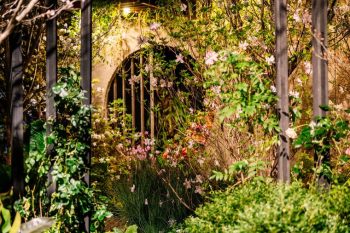 Visitors can step into a West Conservatory transformed by award-winning floral designer Jennifer Reed, where a suspended installation evokes an ethereal, vibrant dreamscape.