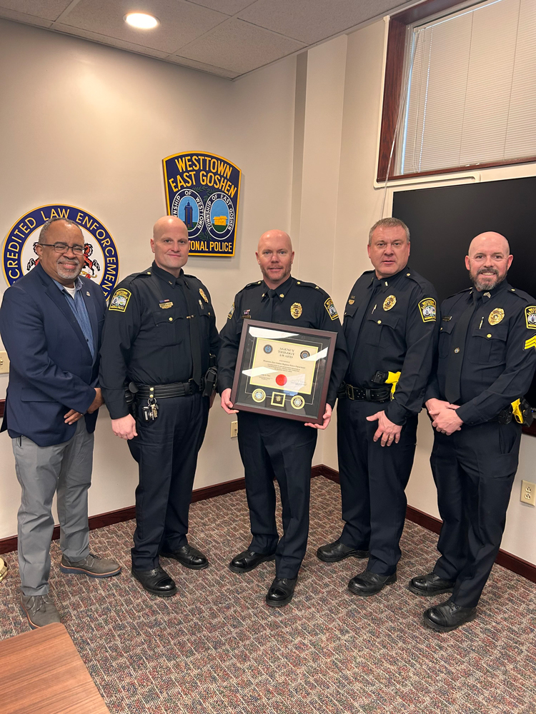 Chief David J. Leahy of Westtown-East Goshen Regional Police Department expressed pride in the department’s achievement: “This recognition means a great deal to everyone on our team. It’s a direct reflection of the hard work our leadership has put into growing professionally and holding themselves to the highest standard — not just for the department, but for every resident we serve.”