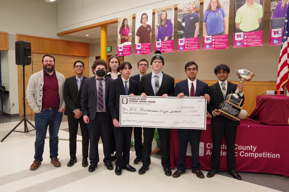 On Tuesday, March 24, 2026, B. Reed Henderson High School emerged victorious over 23 other Chester County schools in the Chester County Academic Competition, which is organized by the Chester County Intermediate Unit (CCIU) and sponsored by the Franklin Mint Federal Credit Union (FMFCU) and CCRES Educational and Behavioral Health Services. B. Reed Henderson High School will represent Chester County at the Pennsylvania State Academic Competition in Harrisburg on Friday, May 1, 2026.